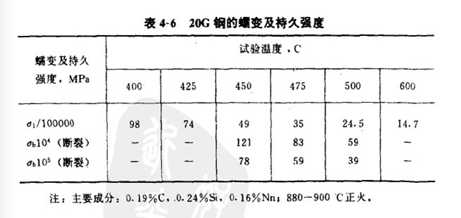 低碳鋼不抗高溫氧化,算不上耐熱鋼,但是由于它價格便宜,加工工藝性能優異,因此是最早使用的鍋爐鋼。當然,當時的鍋爐使用的工作參數都較低。即使現在低碳鋼在一定的溫度條件下,仍獲得了應用。例如,20#鋼無縫鋼管用于壁溫≤450℃的蒸汽管道、集箱,壁溫≤500℃的受熱面管子以及水冷壁管、省煤器管等。表1中列出了用于鍋爐制造的一些低碳鋼的成分與性能。表2中列出了20G鋼的蠕變及持久強度性能。由表可以看出這類低碳鋼的使用溫度范圍。