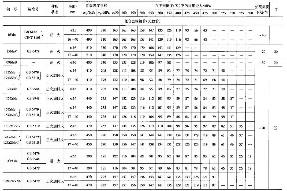 常用低合金鋼鋼管(無縫管)許用應力