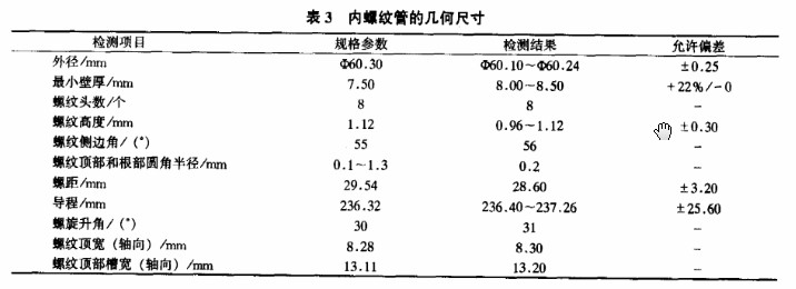 (1) 此次試生產的冷拔內螺紋無縫鋼管,經檢測,各項指標均達到有關標準要求。